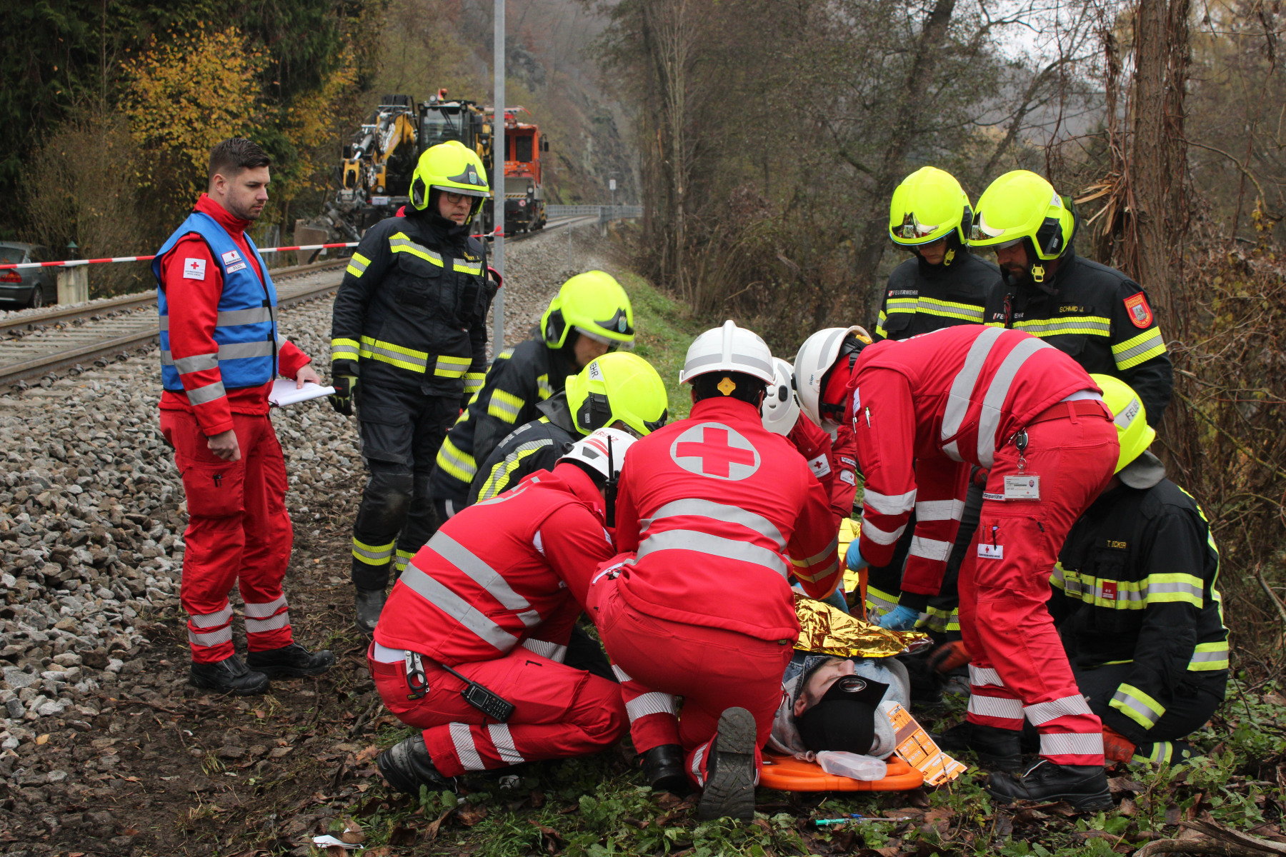 Besonders wichtig war die Abstimmung im Gleisbereich, die enge Zusammenarbeit mit allen Einsatzorganisationen sowie die sichere Führung der Übungsdarsteller, die realitätsnah geschminkt und vorbereitet waren.