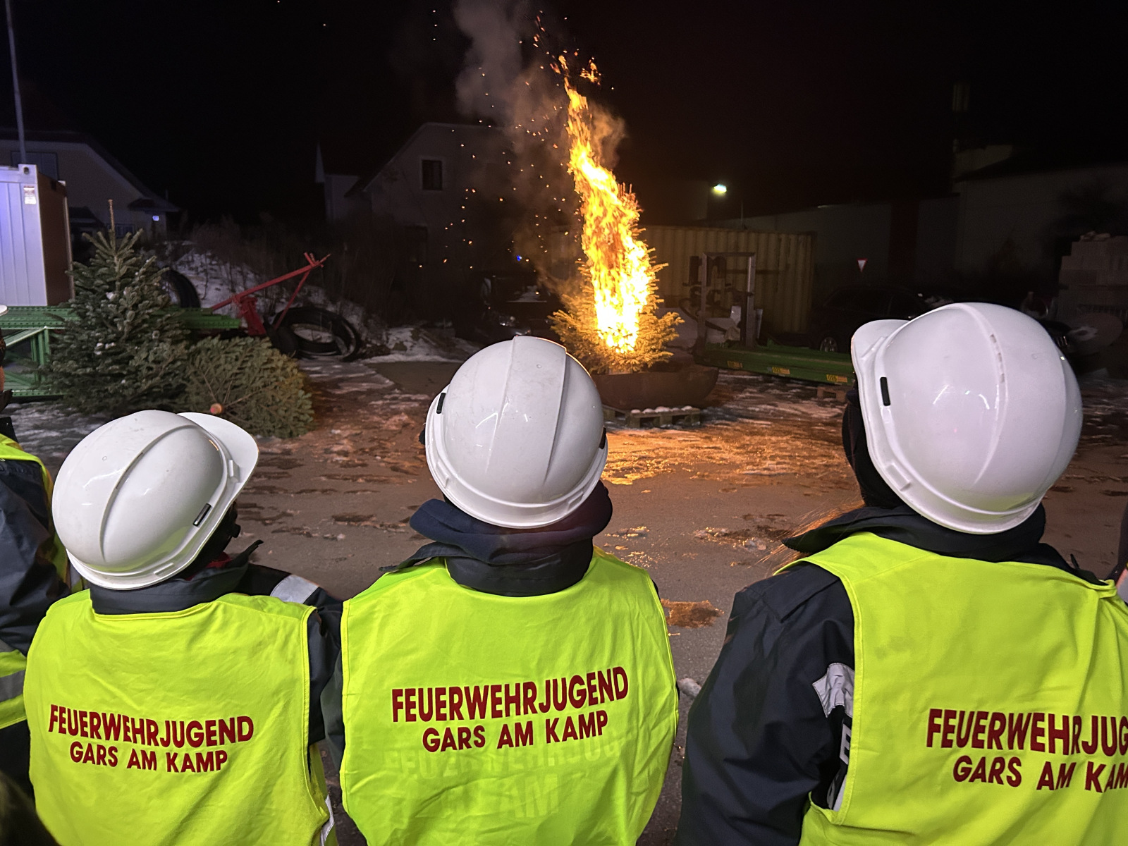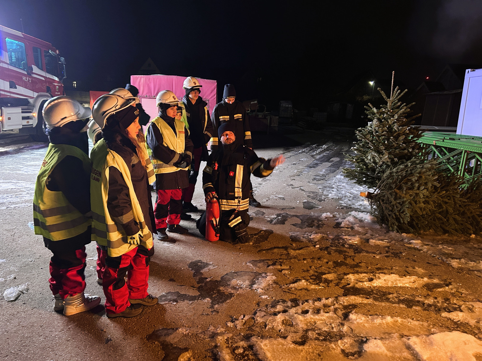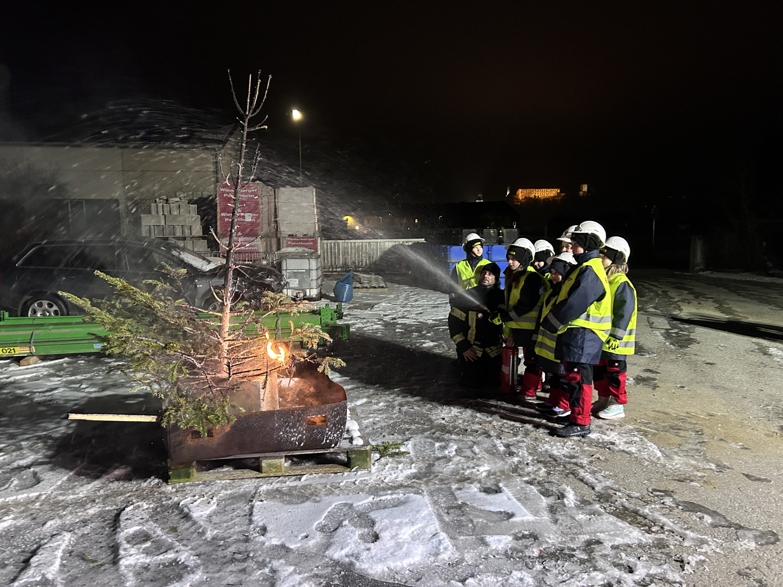 Zu Beginn wurden den Jugendlichen die Gefahren eines Christbaumbrandes anschaulich erklärt. Dabei wurde eindrucksvoll gezeigt, wie schnell sich ein trockener Christbaum entzünden kann und welche große Gefahr davon ausgeht.